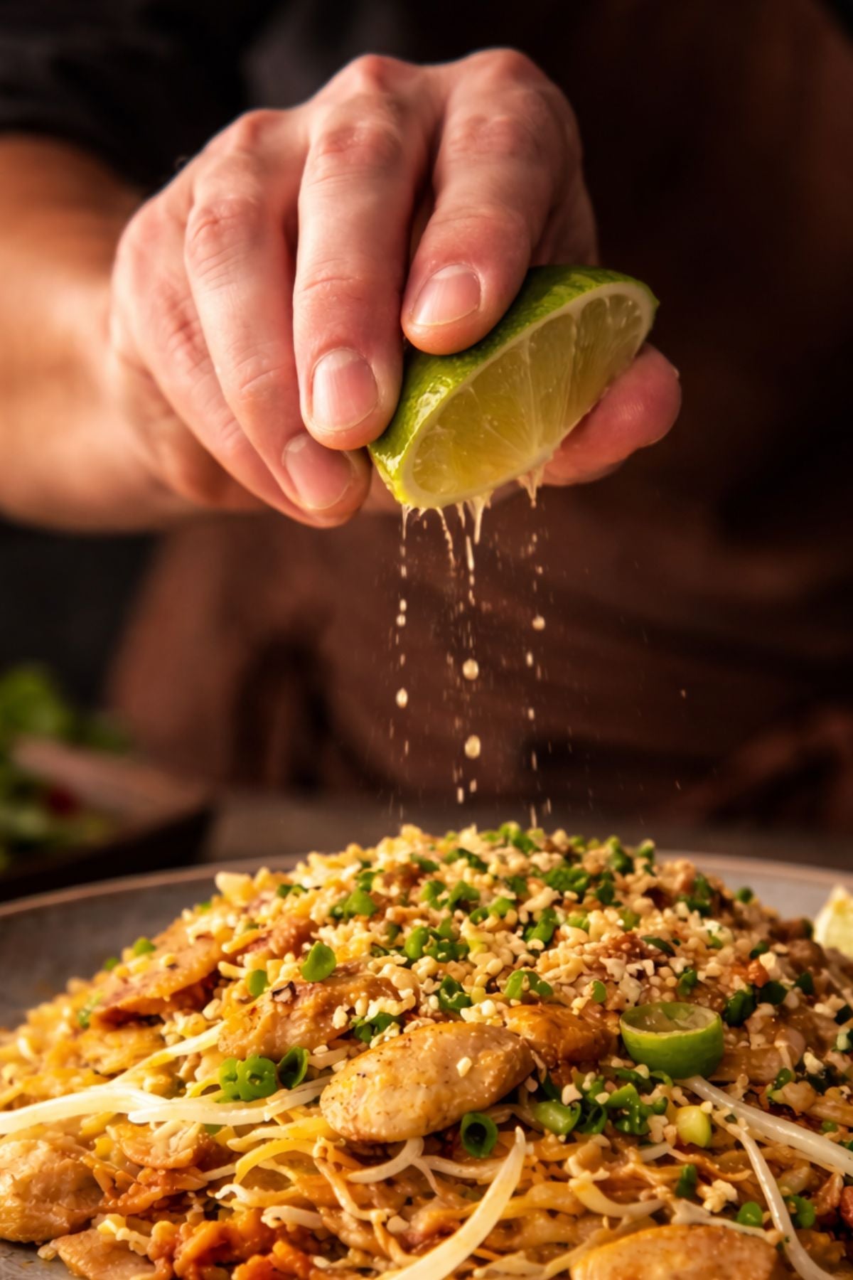 Finaler Geschmackstest: Schmecke ab und verfeinere, falls nötig: Fehlt Säure? Dann füge ein Spritzer Limette hinzu. Fehlt Tiefe? Dann verfeinere das Pad Thai mit ein paar Tropfen Fischsauce. Extra-Tipp: Falls nach dem Öffnen noch zu viel Flüssigkeit in der Pfanne ist, schalte die Sauté-Funktion für 30 Sekunden hoch. Die Stärke der Nudeln bindet die Sauce in Sekunden.