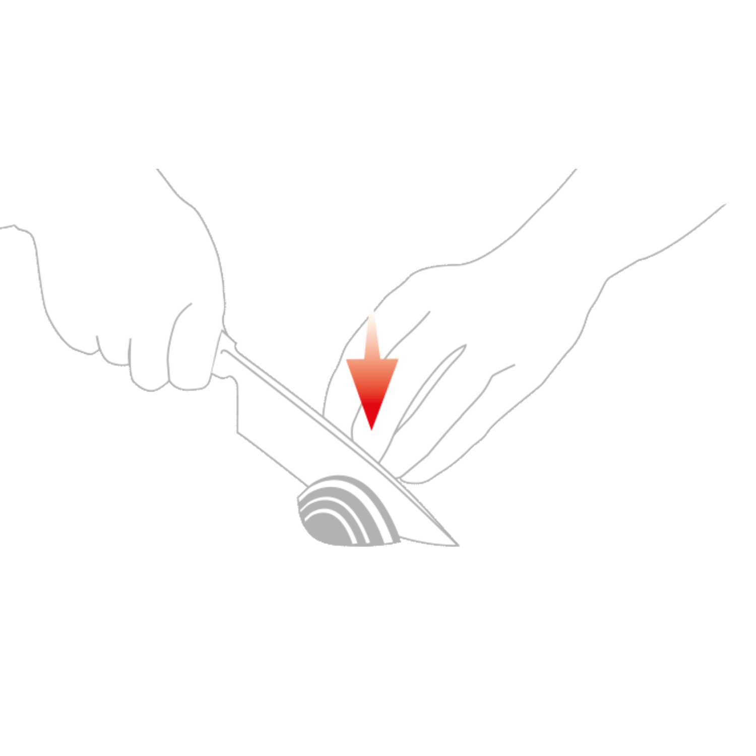 Wenn du dir nicht ins eigene Fleisch schneiden willst, solltest du immer mit scharfen Messern arbeiten. So brauchst du beim Schneiden weniger Kraft und minimierst das Risiko abzurutschen. Achte außerdem immer darauf, kleinzuschneidende Lebensmittel gut und vor allem standfest vorzubereiten. Wackeliges Schneidgut ist immer gefährlich.