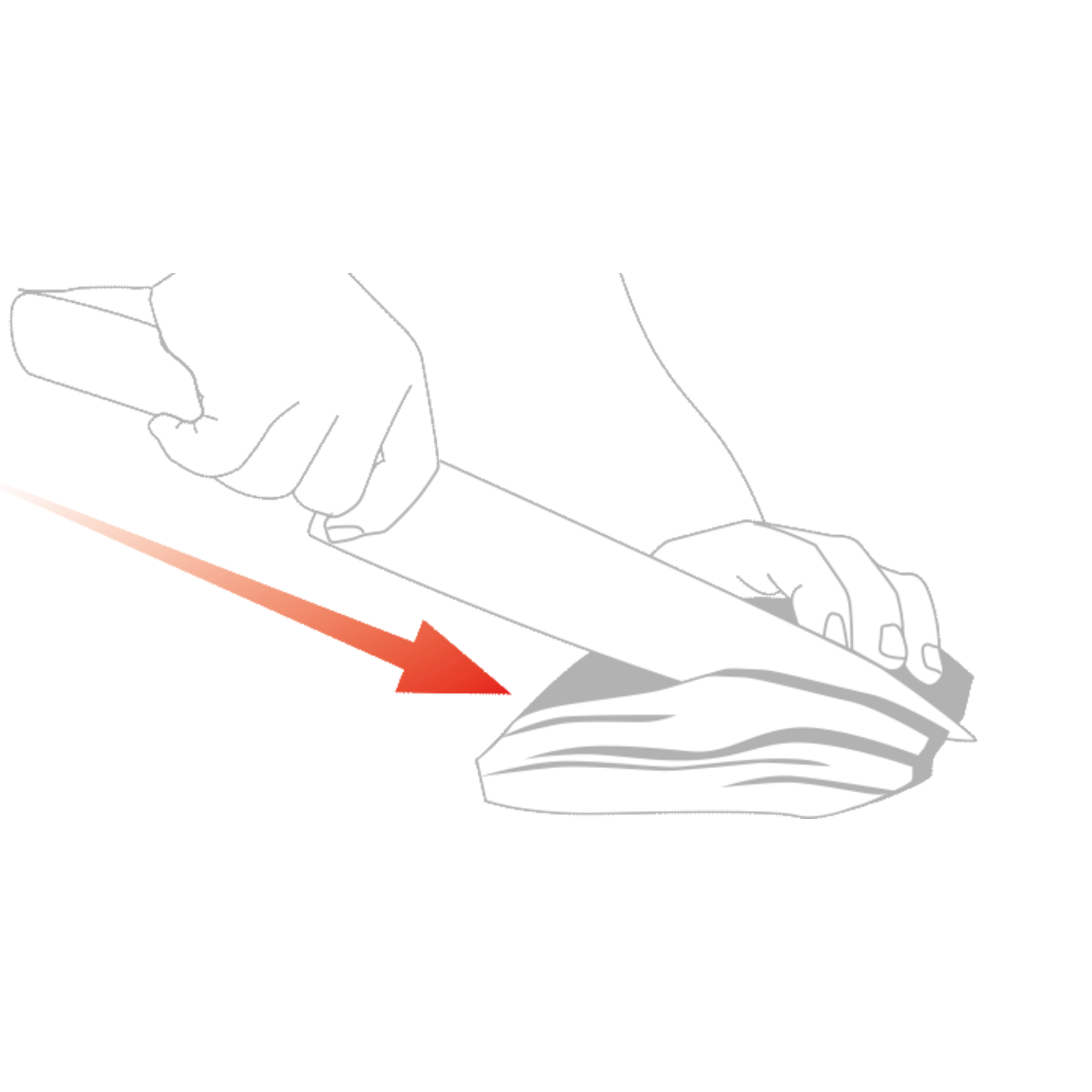 Ein guter Schnitt fängt schon bei der Unterlage an, auf der er gemacht wird. Empfehlenswert sind große Schneidebretter aus Holz oder Kunststoff, sie schonen die Schneide des Messers. Abstumpfend dagegen wirken Materialien wie Stein, Glas, Marmor oder Metall.