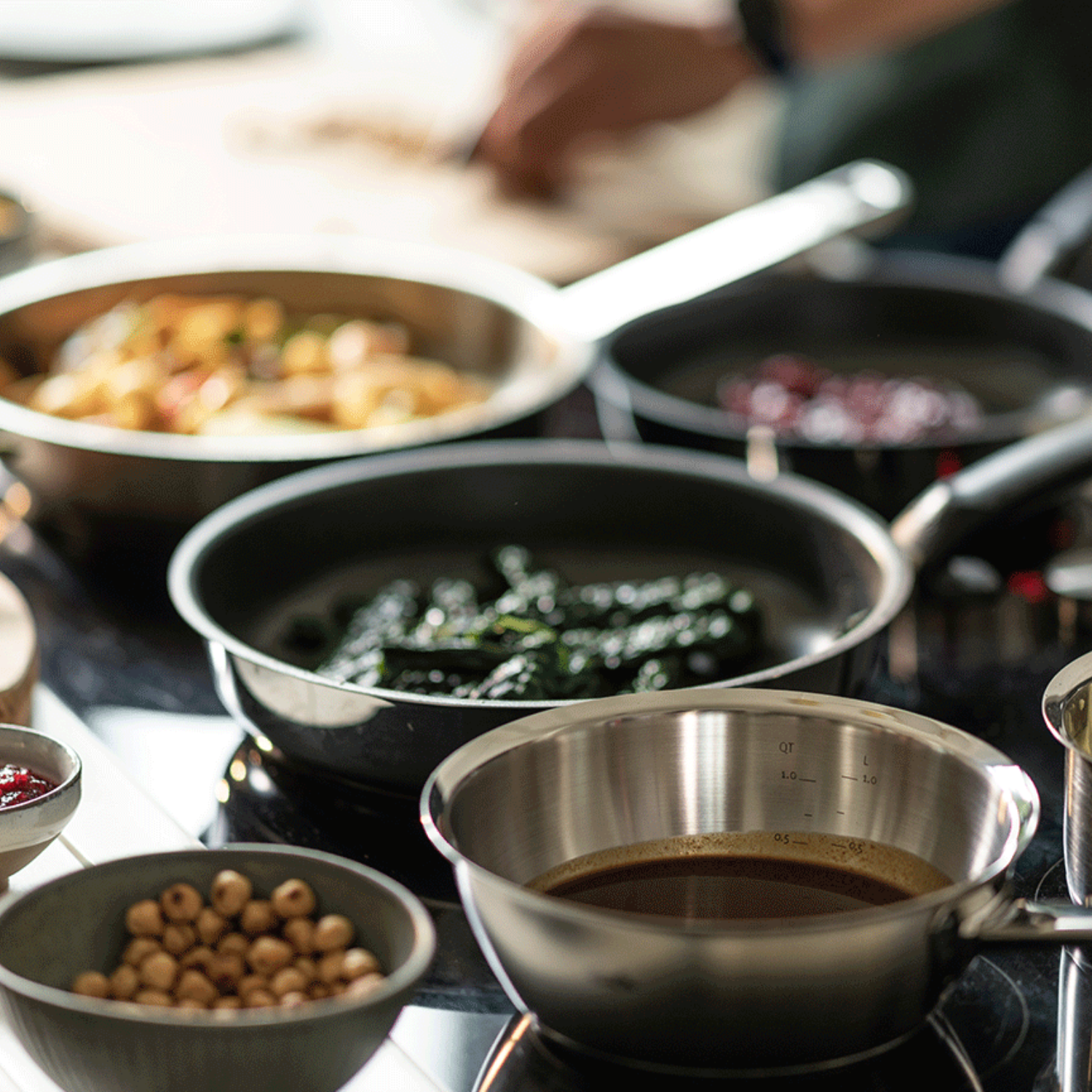 Das richtige Kochgeschirr zu verwenden, ist auch ein Ausdruck von Wertschätzung für die wertvollen Zutaten. Deshalb haben wir für jede Herausforderung in der Küche die richtige Pfanne – egal, ob es um das perfekt gebratene Steak, geröstetes Gemüse oder schonend gebratene Delikatessen geht.
