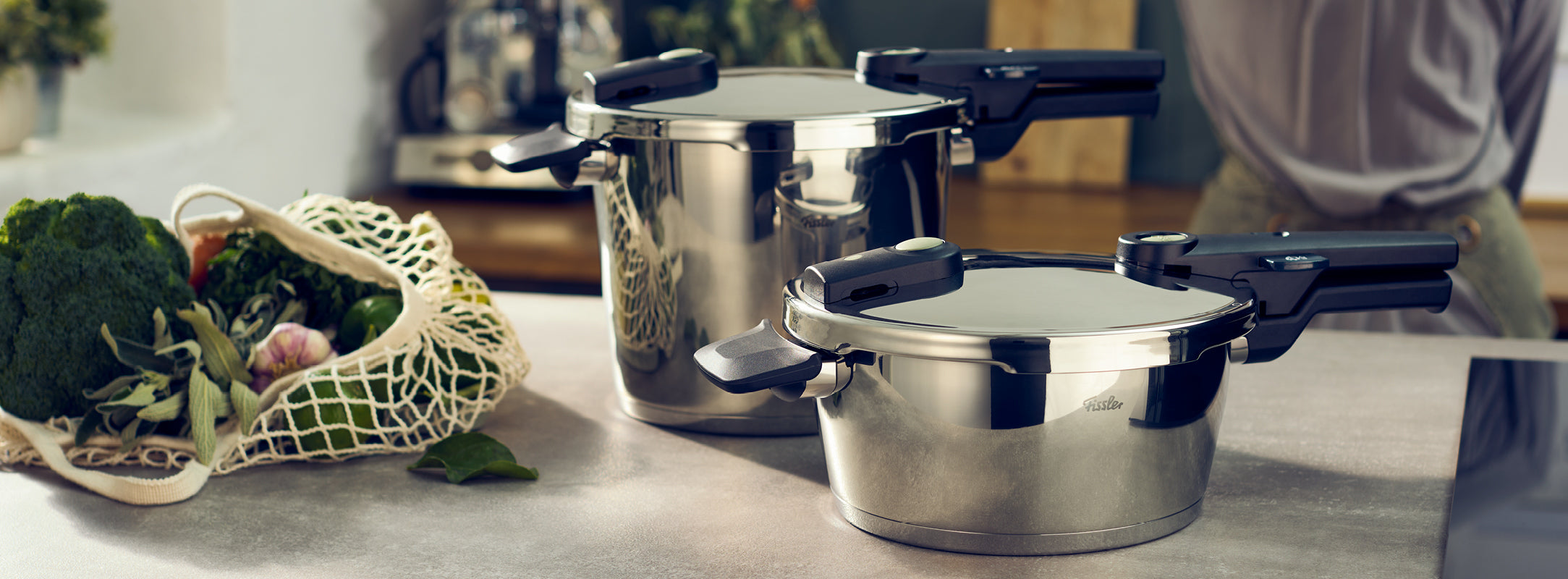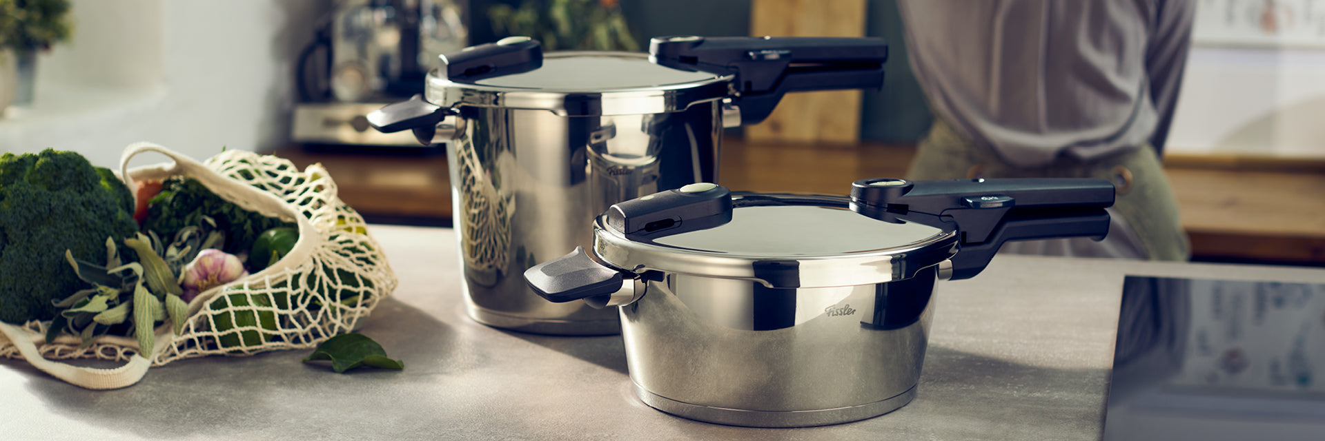 Die Fissler Schnellkochtopf-Sets enthalten mehrere hochwertige Einzel- und Zubehörteile zum Schnellkochen in einem Set.