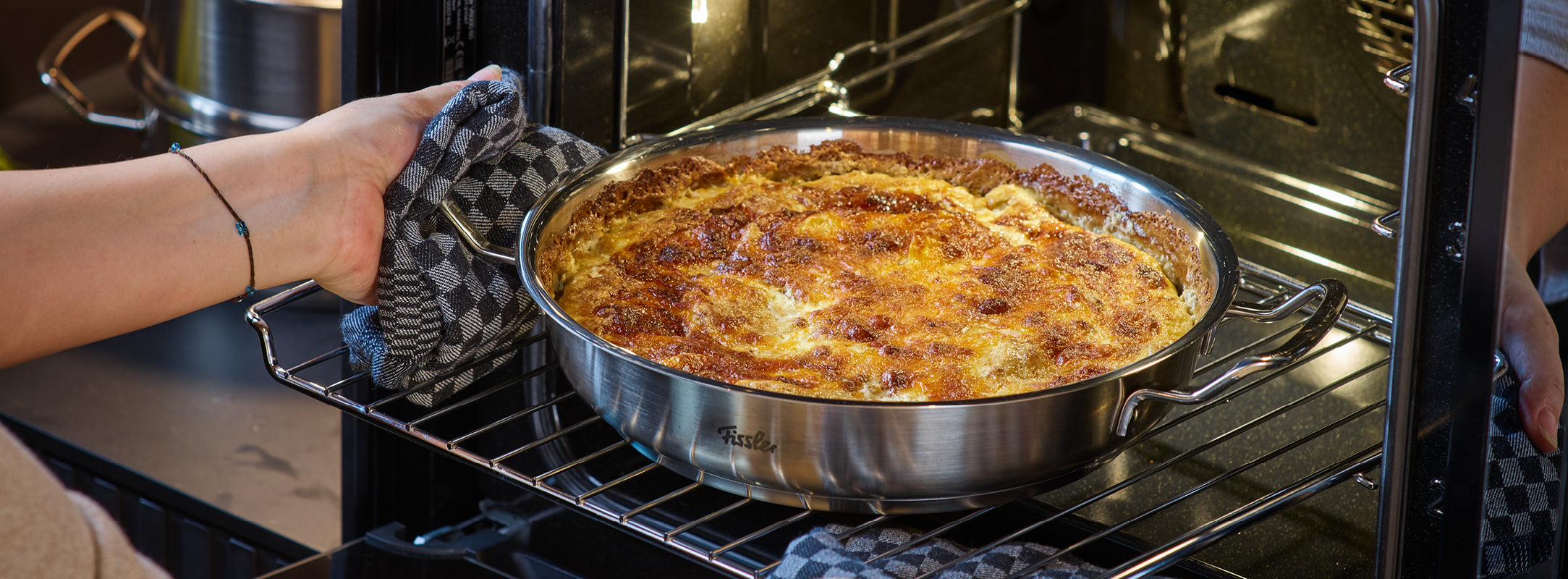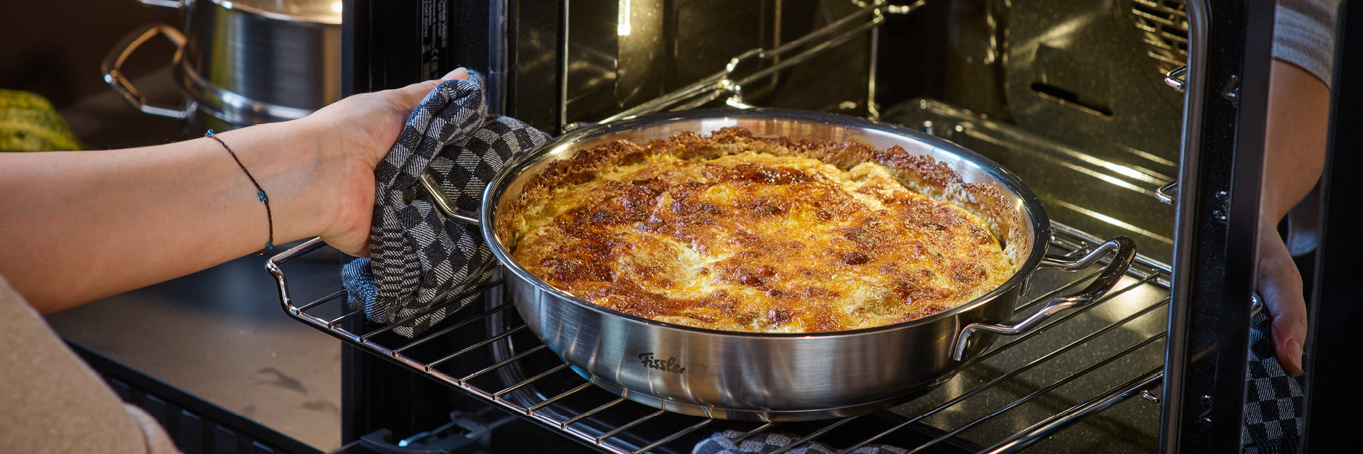 Mit den hochwertigen Servierpfannen von Fissler servierst du Gerichte direkt vom Herd oder aus dem Backofen auf dem Tisch.