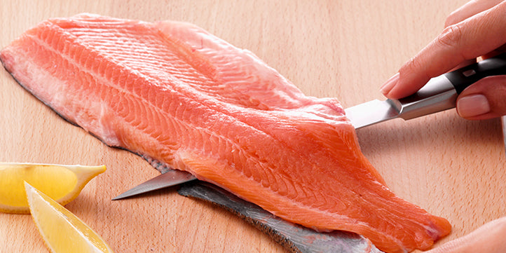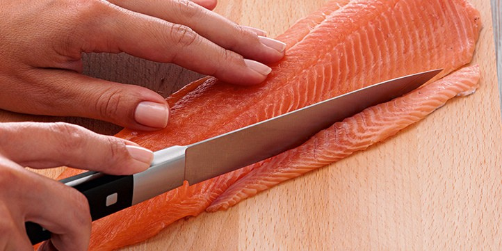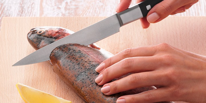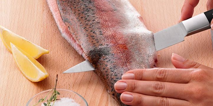 Filleting fish isn't difficult with the right kitchen tools. If you prefer to fillet your own salmon trout instead of leaving it to the fishmonger, you'll primarily need the right knife – a filleting knife with a flexible blade that allows you to work closely around the skin and bones.