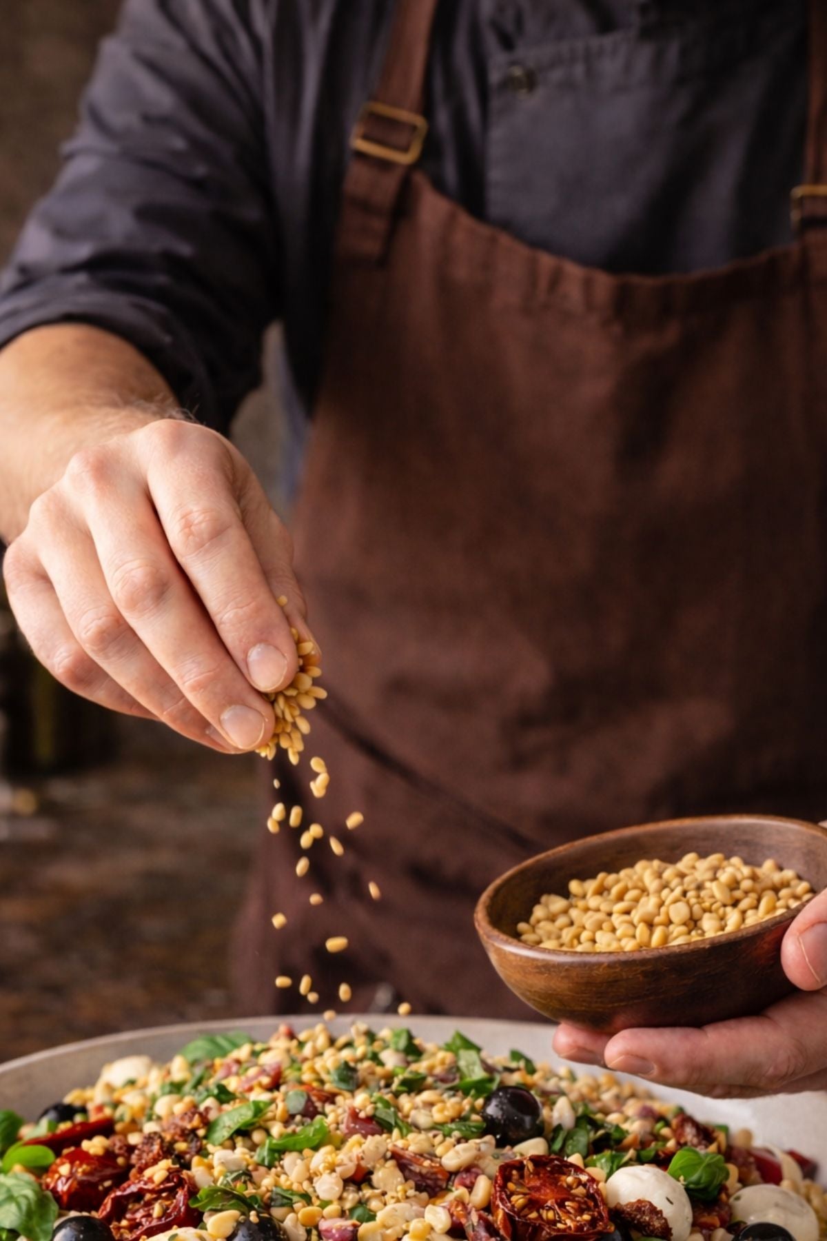 This recipe offers a modern take on Italian authenticity: it's all about the perfect al dente pasta, the roasted aroma, and a vinaigrette that melds with the starch at precisely the right temperature. Your timing, your decision, your precision are what matter.