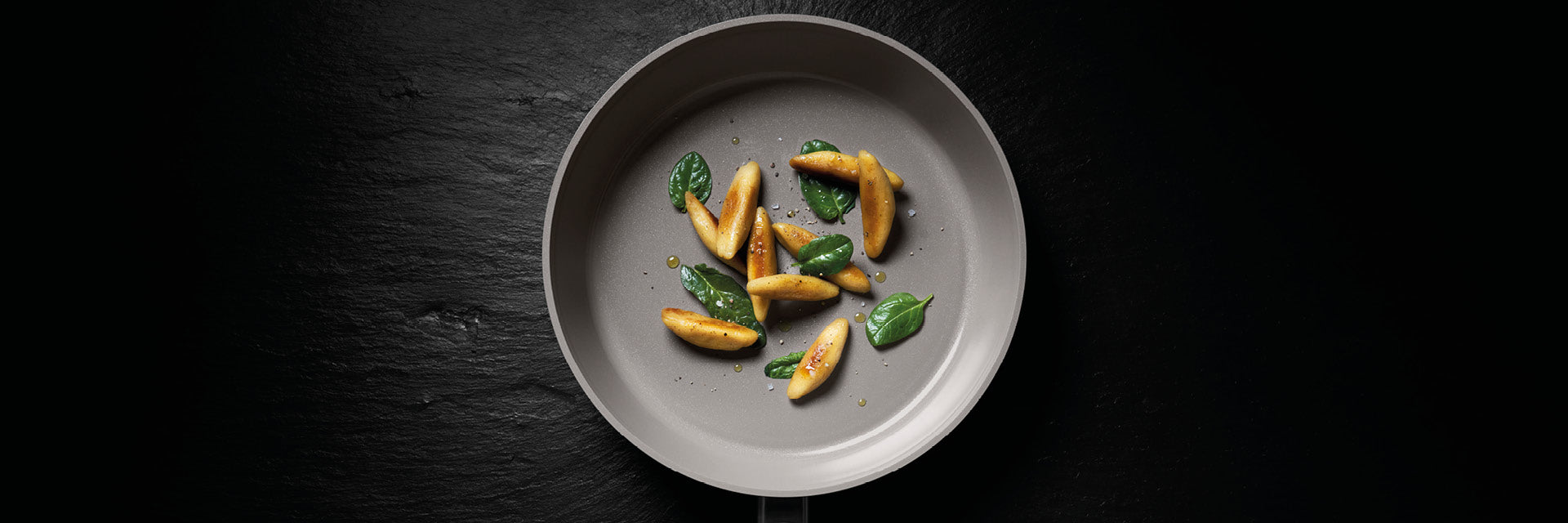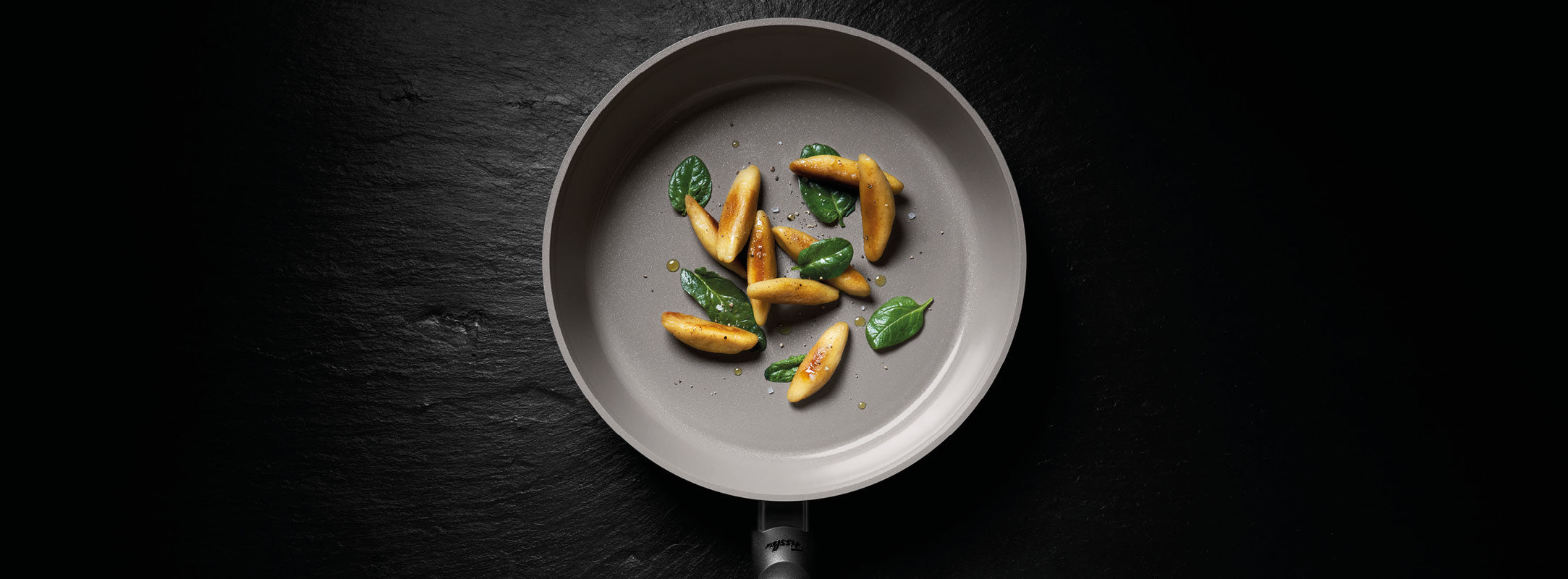 The most popular coating is the classic polytetrafluoroethylene, or PTFE for short. Ceramic pans, on the other hand, are manufactured without the use of PFAS (per- and polyfluoroalkyl substances) or PTFE. Fissler ceramic pans also have a ceramic coating free of PFAS/PTFE.