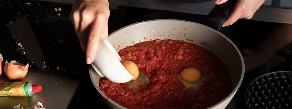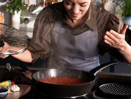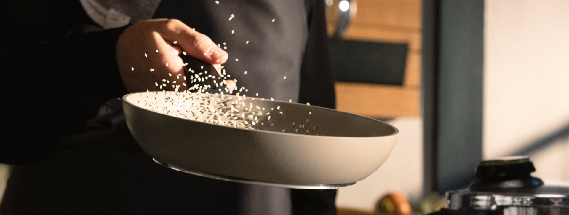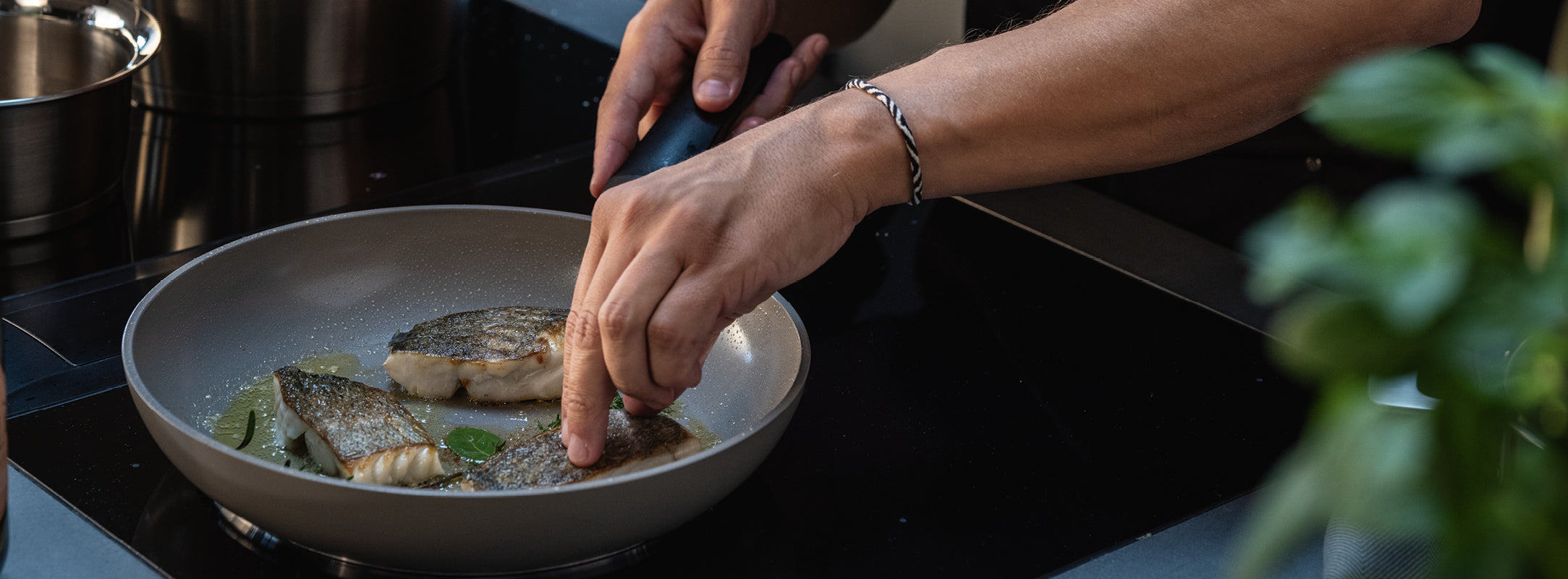You want non-stick, and you want it to be natural. We know. Our Ceratal® Evo proves that non-stick can be natural and durable. Its ceramic coating is water-based and made in Germany without PFAS/PTFE. Fried eggs slide smoothly out of the pan, fish flips without falling apart, and meat sizzles while browning evenly. Less fat, no sticking. And cleaning? A matter of seconds. With this pan, you're ready for anything. And it works on any stovetop, including induction. Made in Germany from up to 60% recycled aluminum. That makes our Ceratal® Evo your obvious first choice.