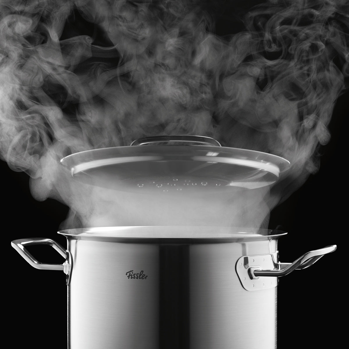 Fissler offers high-quality steamer inserts for pots in various sizes. The inserts are made of high-quality, heat-resistant 18/10 stainless steel.