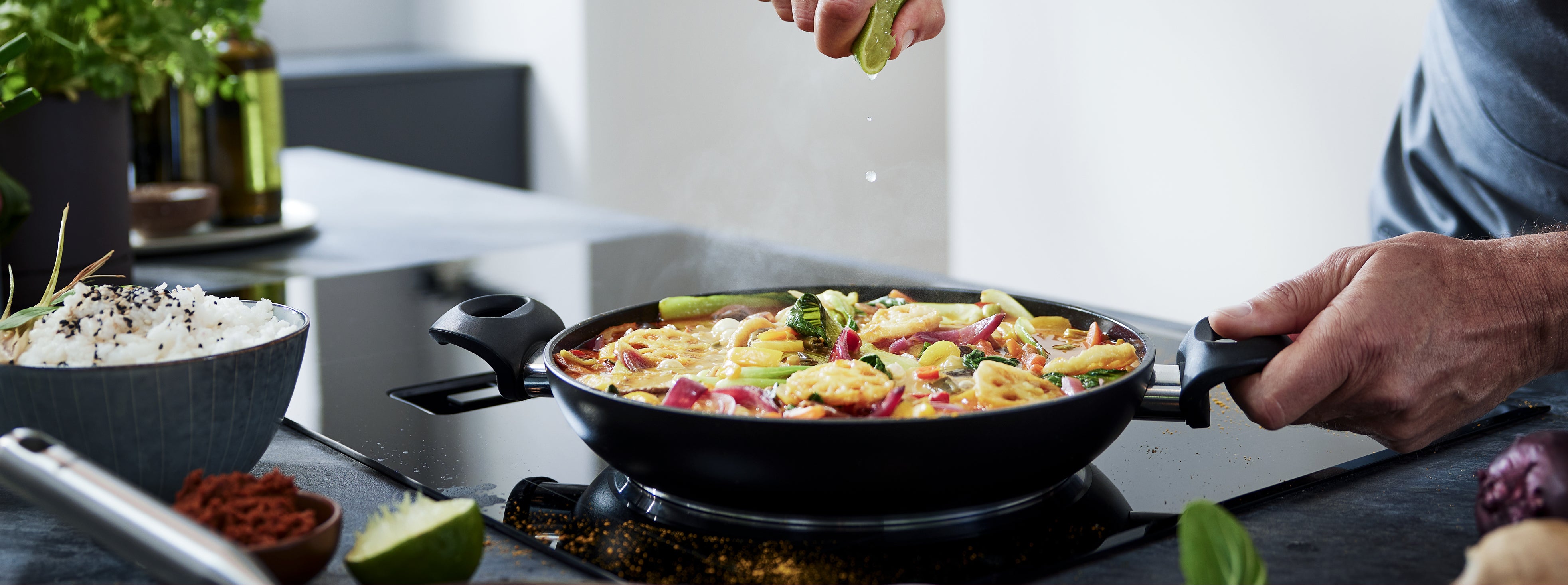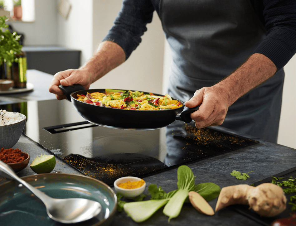 Fissler Essential® offers the perfect pans for everyday use. With their ceramic non-stick coating , manufactured without PFAS/PTFE, they are ideal for gently and crisply frying meat, vegetables, and egg dishes.