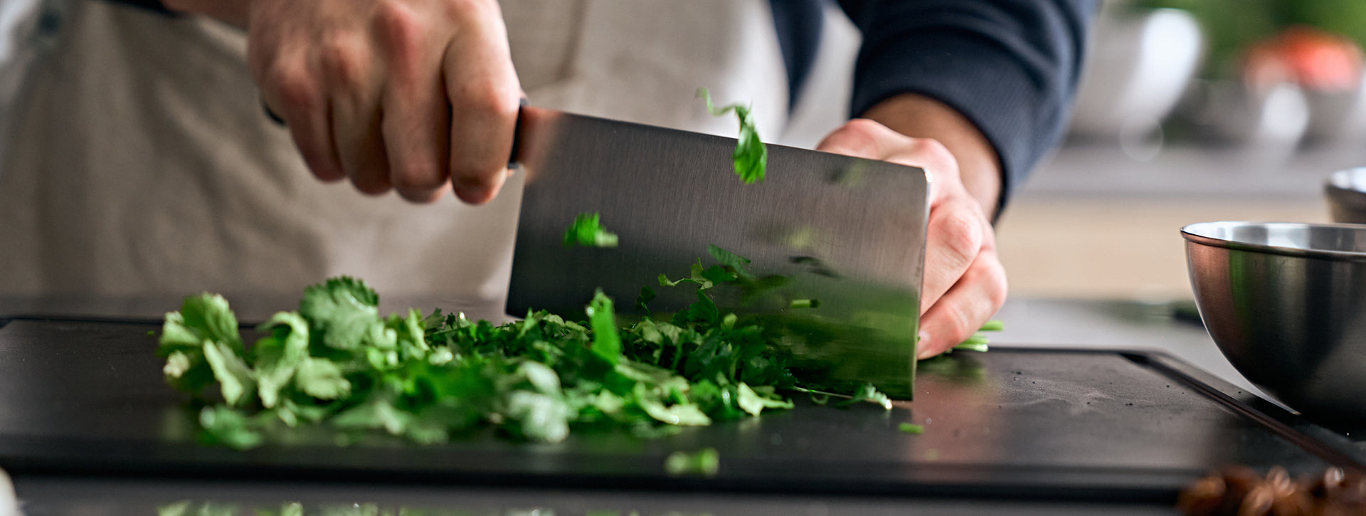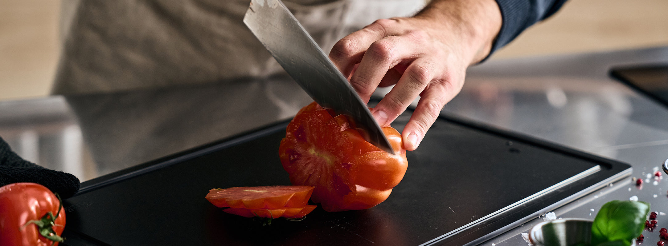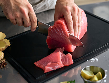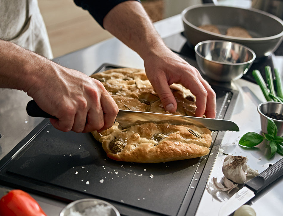 At the same time, we place great emphasis on cutting comfort: The thumb rest and the handle structure of the Fissler ProCut Collection ensure the correct hand position and a particularly secure grip , while the low weight allows for fatigue-free work. This makes the Fissler ProCut Collection ideal for cooking enthusiasts who desire a balanced combination of exceptionally long-lasting sharpness and effortless handling when preparing their food.