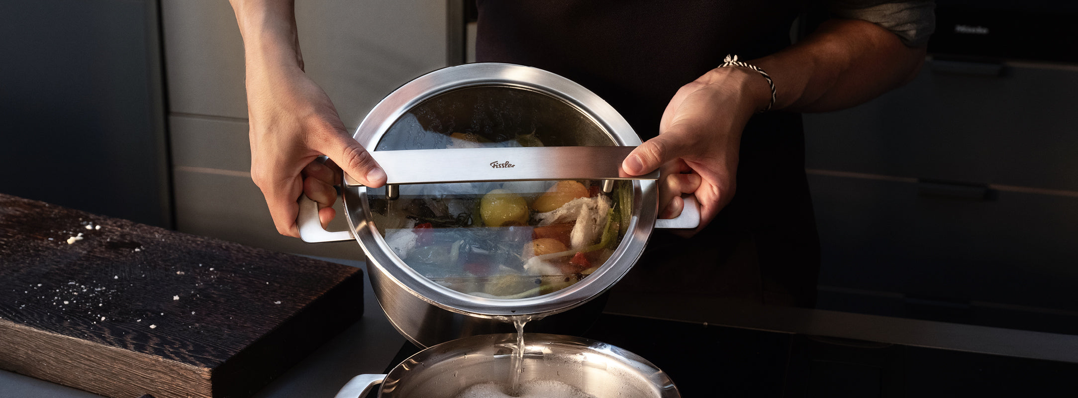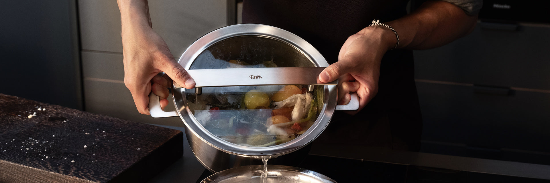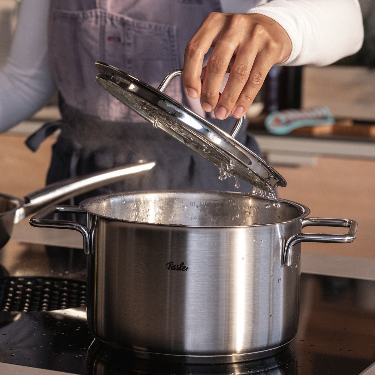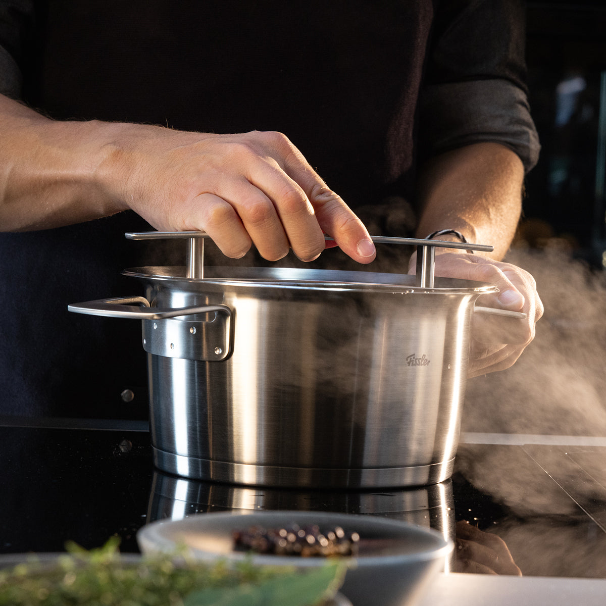 Whether as a practical addition or as a spare part: Fissler pot lids made of high-quality 18/10 stainless steel or tempered glass are available in various sizes and are suitable for corresponding Fissler pans, pots and pressure cooker series.