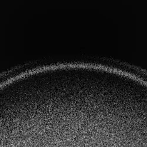 The black, textured enamel coating of the roasting pans consists mostly of glass, is PFAS/PTFE-free, and creates an exclusive aroma-enhancing cooking surface with a micro-grill effect. Natural non-stick properties develop with each use.