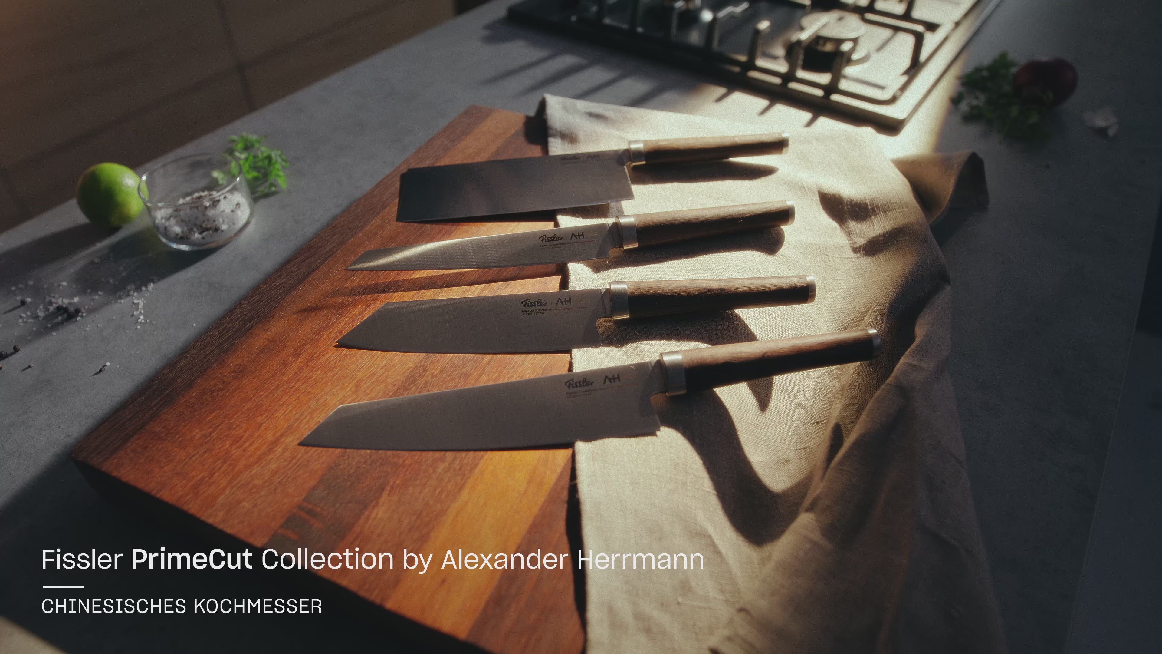 Jedes unvergessliche Gericht, jeder mit Sorgfalt angerichteter Teller hat einen Anfang - scharf, überlegt, präzise. Es beginnt mit einem Schnitt. Der Moment, in dem die Klinge zum ersten Mal die Zutat berührt. Es ist der erste Schritt einer kulinarischen Reise. Gemeinsam mit 2-Sterne Koch Alexander Herrmann präsentieren wir die Fissler PrimeCut Collection by Alexander Herrmann. Inspiriert von den besten Messern der Welt und gefertigt in Solingen sind die Messer der Fissler PrimeCut Collection by Alexander Herrmann präzise im Schnitt, angenehm in der Handhabung und individuell im Design. Die Laserschnitt-Technologie ermöglicht die Verwendung eines besonders harten Klingenstahls, der speziell für die Anforderungen in der Küche entwickelt wurde. Er sorgt dafür, dass die Klinge dünner geschliffen und die Schneide außerordentlich scharf gemacht werden kann. Neben der besonders scharfen und schnitthaltigen Klinge sticht vor allem der Edelholzgriff aus Räuchereiche heraus, der für ein warmes Handgefühl und eine natürliche Ästhetik sorgt.